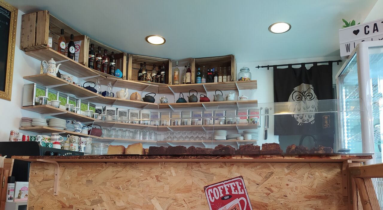 Le local comprend deux salles, une petite cour extérieure ainsi qu'une verrière qui est exclusivement dédiée aux chats, dans laquelle ils peuvent se retirer s'ils ne souhaitent pas rester en présence du public.