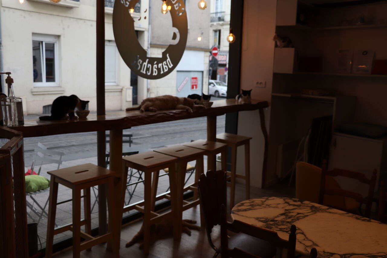 Cats and cookies est un Coffee shop dans lequel cohabitent 12 chats de la SPAA mis à l'adoption.